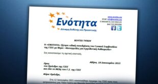 Αθήνα, 23/6/2021 ΔΕΛΤΙΟ ΤΥΠΟΥ Η «ΕΝΟΤΗΤΑ» σύμφωνα και με το καταστατικό της, δημιουργήθηκε με στόχο μία σύγχρονη ελεύθερη Ευρωπαϊκή δομή του συνδικαλιστικού κινήματος που θα λειτουργεί με αξιοκρατία, δικαιοσύνη και κοινωνική αλληλεγγύη μέσα σε ένα ελεύθερο οικονομικό τοπίο που θα εξασφαλίζει ευημερία για τους εργαζόμενους. Σε αυτή την προοπτική στρατεύτηκαν …