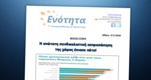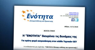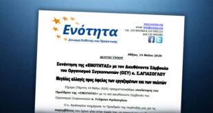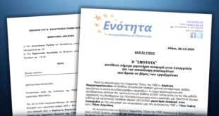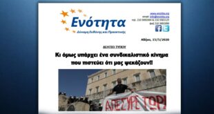 Αθήνα, 28 Δεκεμβρίου 2020 ΔΕΛΤΙΟ ΤΥΠΟΥ Η ’’ΕΝΟΤΗΤΑ’’ κατέθεσε σήμερα μηνυτήρια αναφορά στον Εισαγγελέα για την αποκάλυψη κυκλωμάτων που δρουν σε βάρος των εργαζομένων Μετά τις αποκαλύψεις του Γραμματέα Τύπου της ΓΣΕΕ κ. Δημήτρη Καραγεωργόπουλου ότι διαθέτει στοιχεία (επί τέσσερα χρόνια) για παράνομες πράξεις εργοδοτών οι οποίοι …