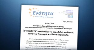 ΔιαβάστεΗ ’’ΕΝΟΤΗΤΑ’’ καταδικάζει τις ακροδεξιές επιθέσεις κατά του Υπουργού κ. Κώστα Καραμανλή