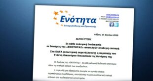 Αθήνα, 3 Φεβρουαρίου 2020 ΔΕΛΤΙΟ ΤΥΠΟΥ Η “ΕΝΟΤΗΤΑ” με μία μεγαλειώδη συγκέντρωση εγκαινίασε τη νέα χρονιά Την Πέμπτη 30 Ιανουαρίου 2020, η παράταξή μας «ΕΝΟΤΗΤΑ δύναμη ευθύνης και προοπτικής» έκοψε την Πρωτοχρονιάτική Πίτα της με τη συμμετοχή εκατοντάδων μελών μας. Στην εκδήλωσή μας συμμετείχαν και τοποθετήθηκαν: Ο Γραμματέας …