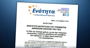 Αθήνα, 28 Δεκεμβρίου 2020 ΔΕΛΤΙΟ ΤΥΠΟΥ Προς τον Γραμματέα Τύπου της ΓΣΕΕ κ. Δημήτρη Καραγεωργόπουλο (κοινοποίηση σε όλα τα μέλη Διοίκησης της ΓΣΕΕ) κ. Καραγεωργόπουλε, Με αφορμή την έκδοση δελτίου τύπου (22.12.2020) της παράταξης μας: ’’ENOTHTA δύναμη ευθύνης και προοπτικής’’ αναφορικά με τις καταγγελίες σας …