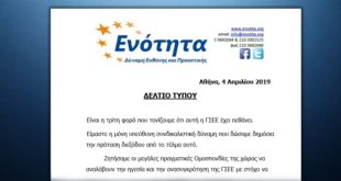 Αθήνα, 22 Οκτωβρίου 2019 ΔΕΛΤΙΟ ΤΥΠΟΥ Η «ΕΝΟΤΗΤΑ» δεν αγωνίζεται για καρέκλες και αξιώματα Το κάναμε πράξη σήμερα Σήμερα 22/10/2019, σύμφωνα με την δικαστική απόφαση διορισμού Διοίκησης της ΓΣΕΕ, έγινε η εκλογή μελών Εκτελεστικής Γραμματείας. Η παράταξή μας «ΕΝΟΤΗΤΑ», έχοντας και στην προηγούμενη αιρετή Διοίκηση έδρα στην Εκτελεστική …