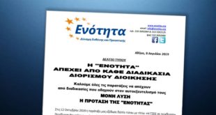 ΔιαβάστεΗ “ΕΝΟΤΗΤΑ” απέχει από κάθε διαδικασία διορισμού διοίκησης