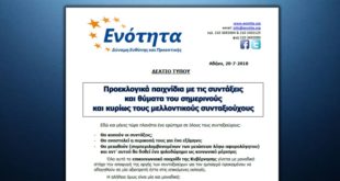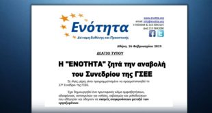 ΔιαβάστεΗ “ΕΝΟΤΗΤΑ” ζητά την αναβολή του Συνεδρίου της ΓΣΕΕ