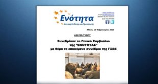 Αθήνα, 13 Φεβρουαρίου 2019 ΔΕΛΤΙΟ ΤΥΠΟΥ Συνεδρίασε την Τρίτη 12 Φεβρουαρίου 2019, το Γενικό Συμβούλιο της «ΕΝΟΤΗΤΑΣ» με αποκλειστικό θέμα το επικείμενο συνέδριο της ΓΣΕΕ. Μετά την κεντρική εισήγηση του Προεδρείου της παράταξης, ομόφωνα τα μέλη του Γενικού Συμβουλίου μας καθόρισαν τους στόχους και την τακτική που θα ακολουθήσουμε …