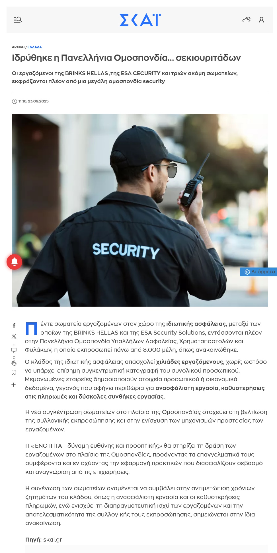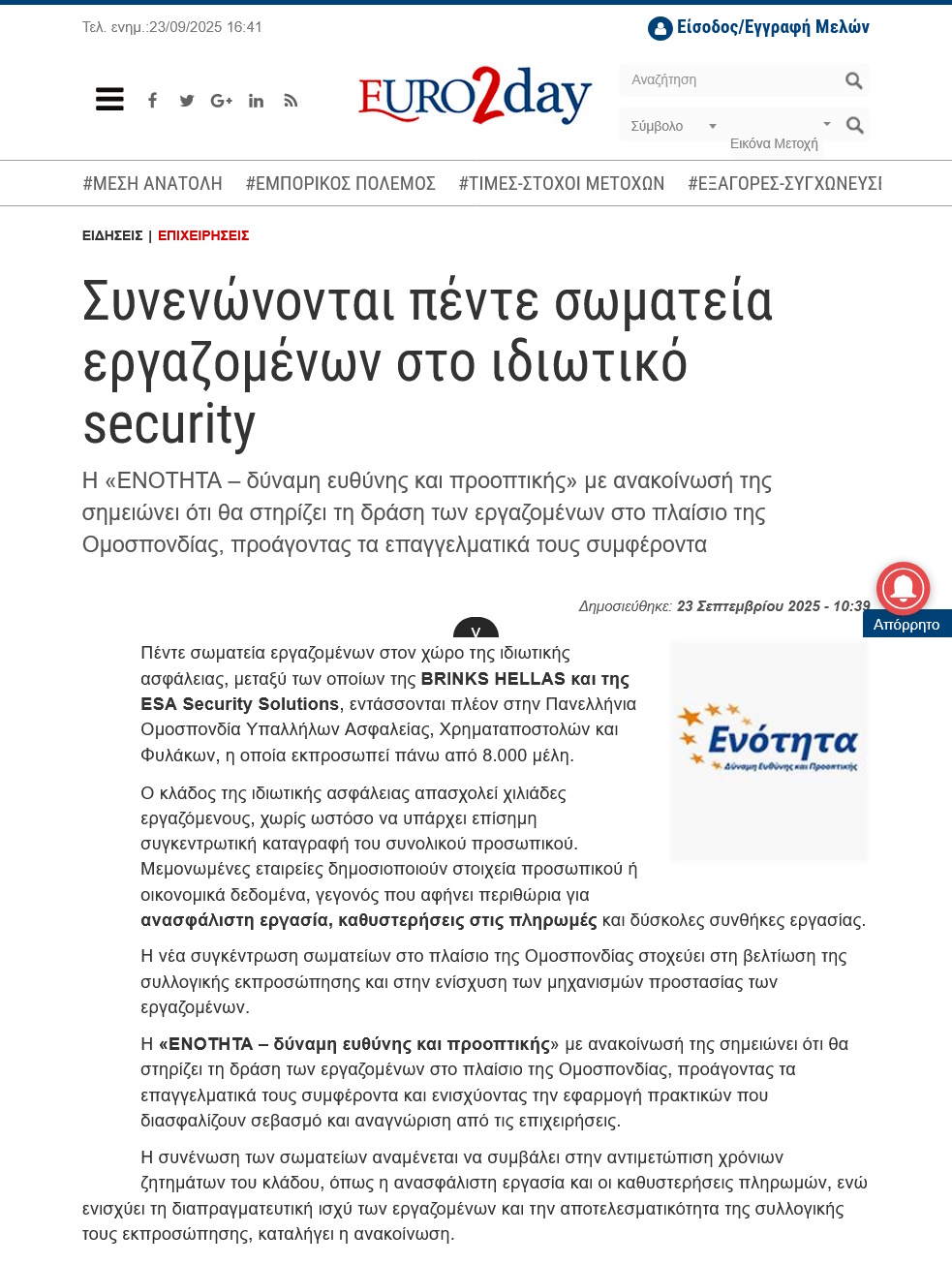 Δημοσιεύματα: Η ΕΝΟΤΗΤΑ χαιρετίζει την συνένωση σωματείων κάτω από την ομπρέλα μιας μεγάλης Ομοσπονδίας September 23, 2025 Share Facebook Twitter LinkedIn