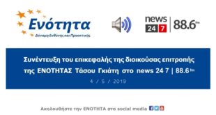 Ο επικεφαλής της ΕΝΟΤΗΤΑΣ Τάσος Γκιάτης, καλεσμένος στο “news 24 7 fm”