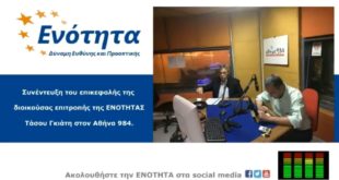 Συνέντευξη του μέλους του γενικού συμβουλίου της ΕΝΟΤΗΤΑΣ Γιάννη Οικονόμου στο ραδιόφωνο του Αθήνα 984.