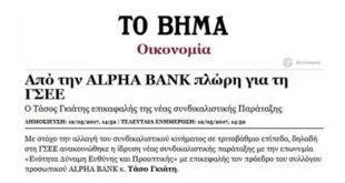 Μια νέα προσέγγιση στη δράση του συνδικαλιστικού κινήματος, η οποία επικεντρώνεται στην παροχή σημαντικών υπηρεσιών στα μέλη του, περιγράφει ο πρόεδρος του Συλλόγου Εργαζομένων στην Alpha Bank Τάσος Γκιάτης. Κατ’ αρχάς θα ήθελα να μου μιλήσετε για τις δραστηριότητες του συλλόγου σας όσον αφορά την παροχή υπηρεσιών στα μέλη σας. …