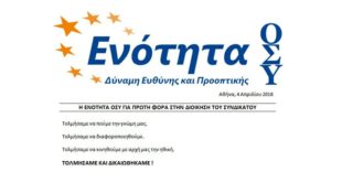 ΔιαβάστεΗ ΕΝΟΤΗΤΑ ΟΣΥ για πρώτη φορά στην διοίκηση του συνδικάτου