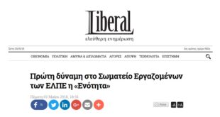 ΔιαβάστεLiberal: Πρώτη δύναμη στο Σωματείο Εργαζομένων των ΕΛΠΕ η ΕΝΟΤΗΤΑ